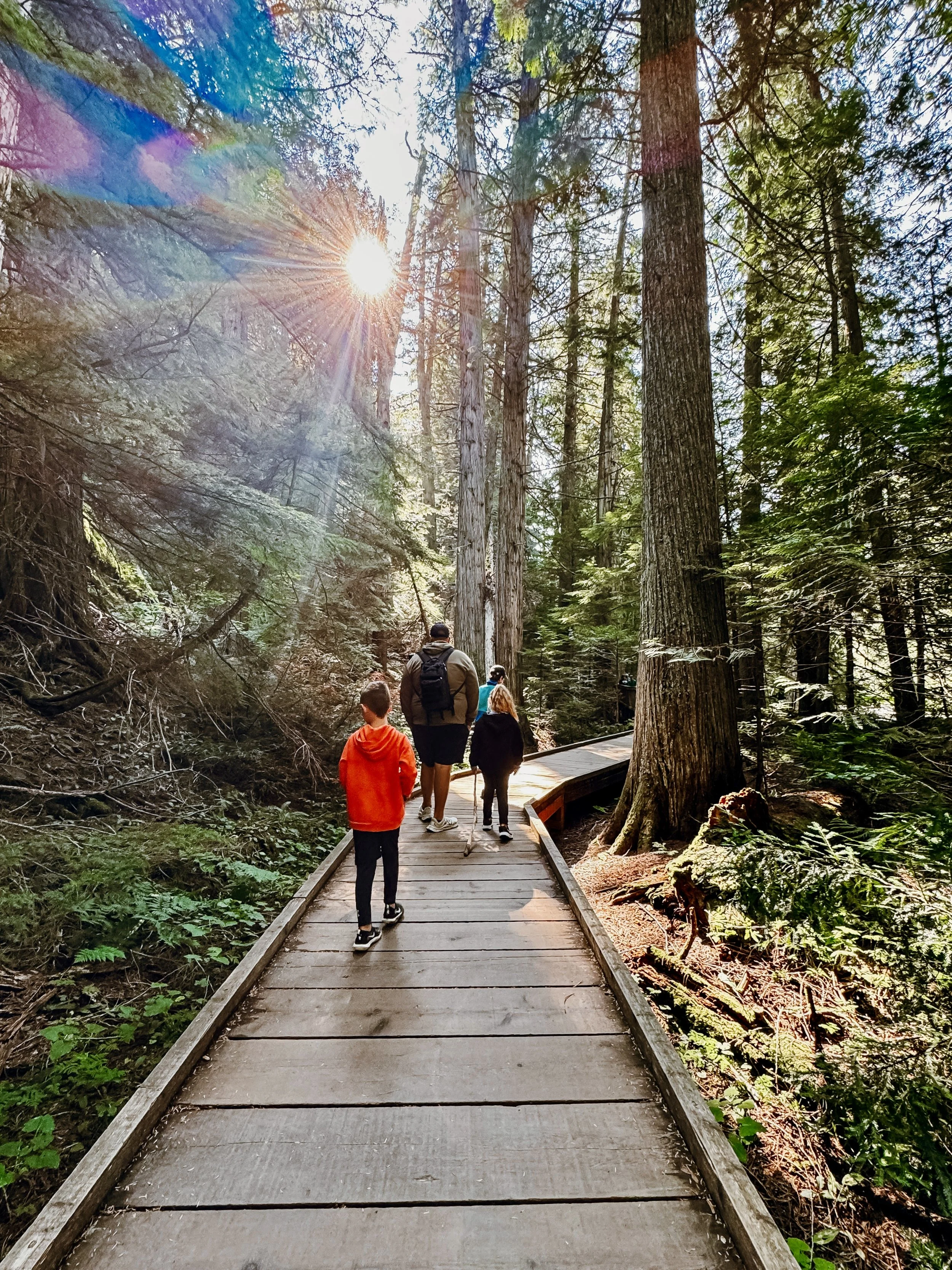 Afterward, we treated ourselves to coffee and ice cream at Eddie’s Cafe before visiting the Apgar Nature Center, open from 10 am to 4 pm. The center is nestled among the cedar trees in Apgar Village and offers a variety of kid-friendly, hands-on interactive activities and displays, making it a great stop for families.