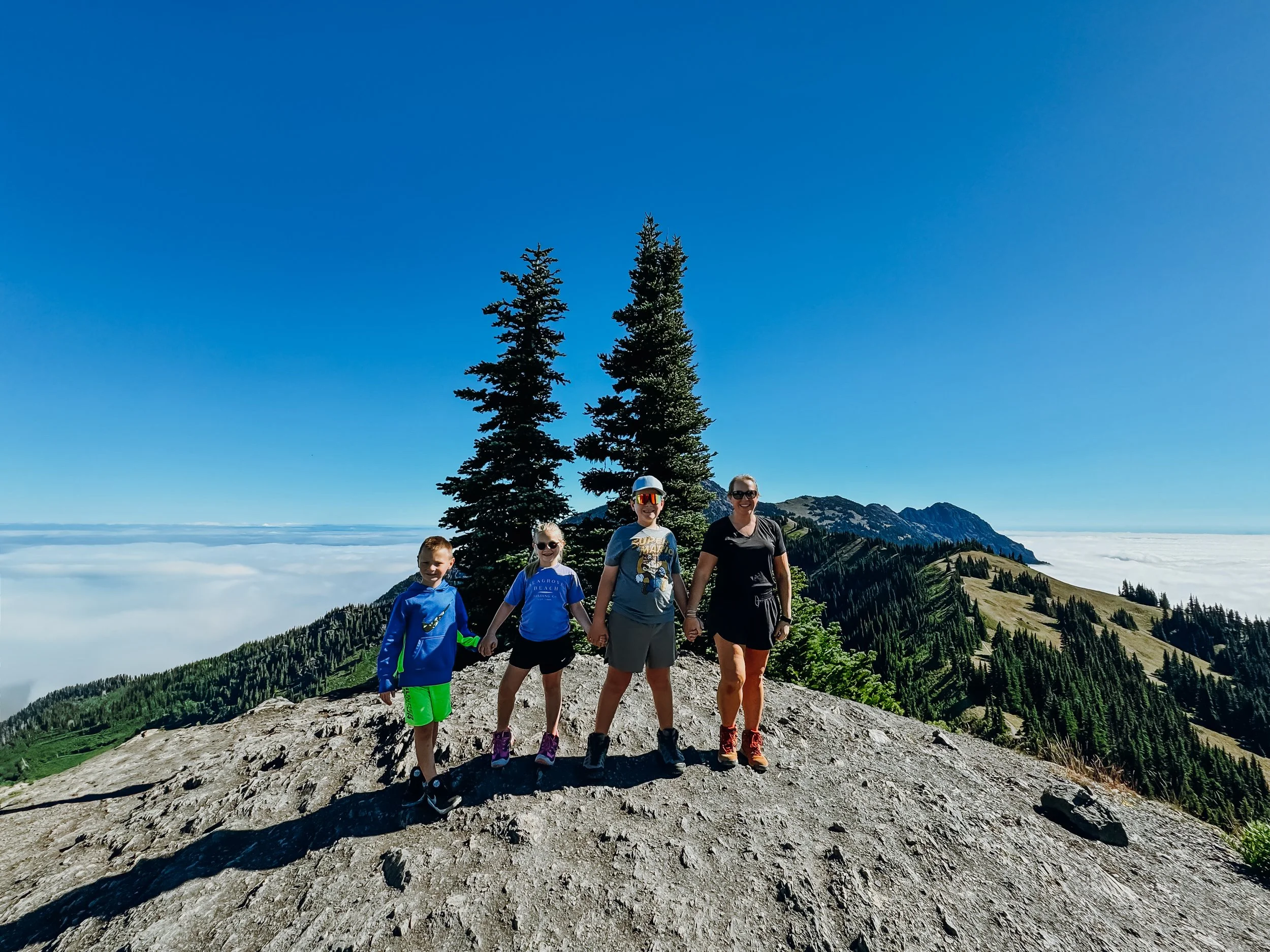 Our second hike was High Ridge. The hike here is amazing, offering stunning views in every direction: south into the mountains, west towards Mount Olympus, and north across a fog-covered Strait of Juan de Fuca towards Canada. Hawkins tested his fear of heights here, and I was tremendously proud of him! The trail was steep, with drop-offs on either side, making his accomplishment even more impressive.